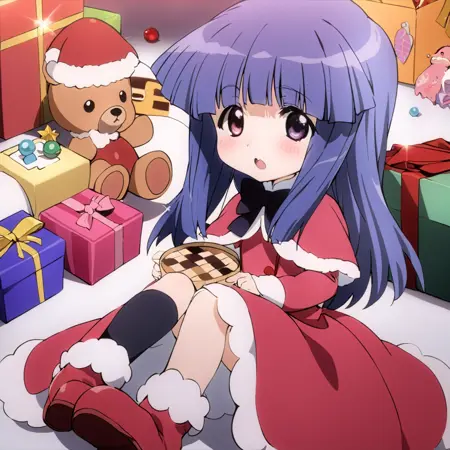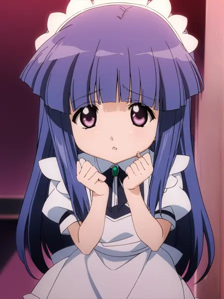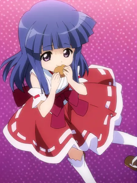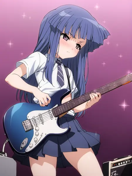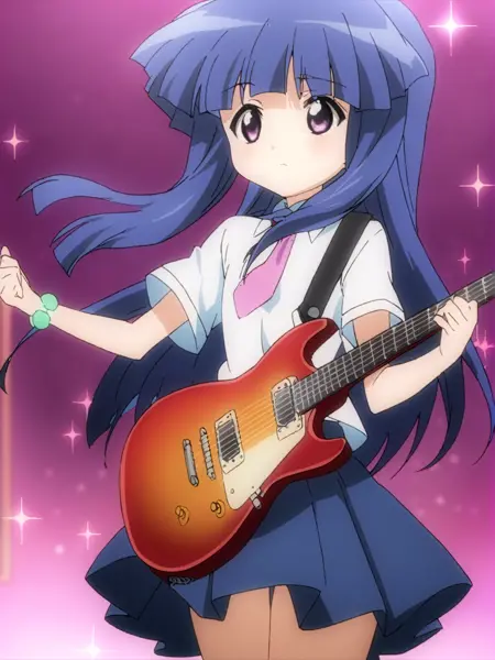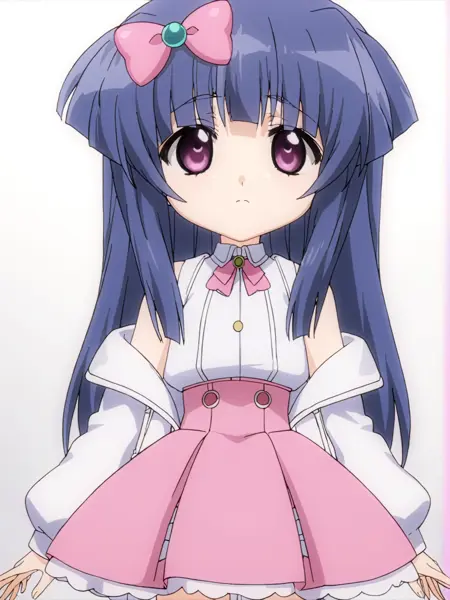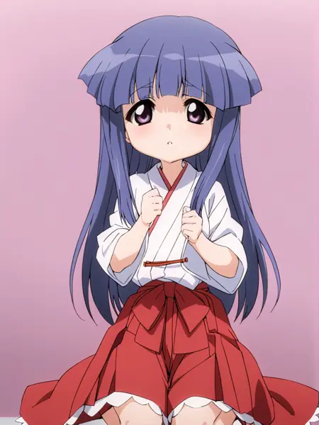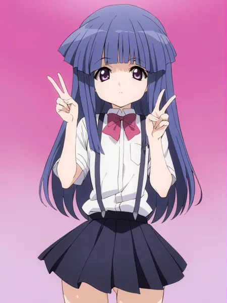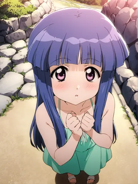 푸루데 리카 = 1girl,solo,furude rika,blue hair,purple eyes,long hair,blunt bangs,bangs