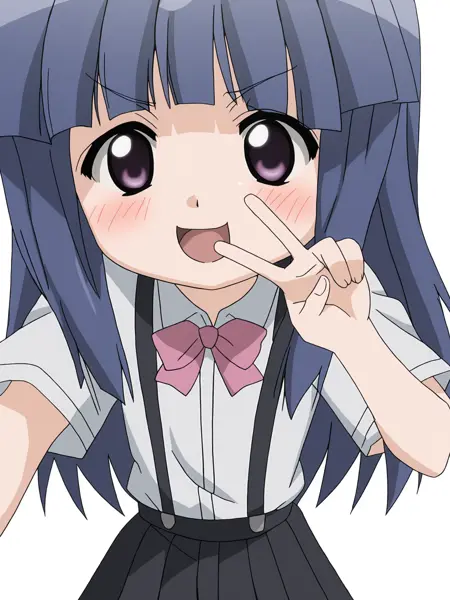 Furude Rika = 1girl,solo,furude rika,蓝色头发,紫色眼睛,长发,齐刘海,刘海
