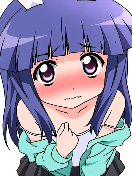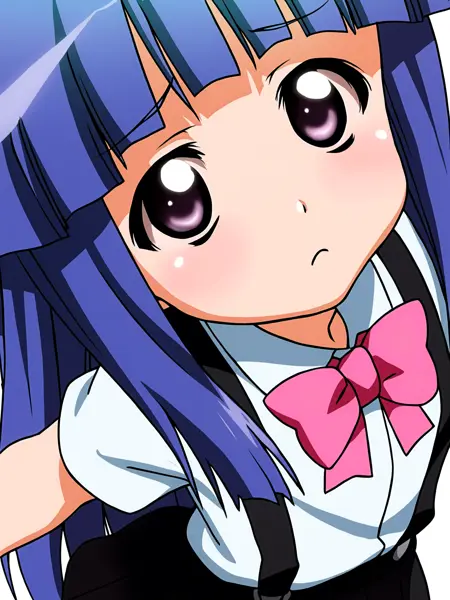 富永莉花 = 1girl,solo,furude rika,blue hair,purple eyes,long hair,blunt bangs,bangs