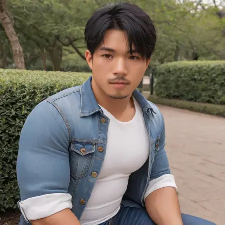 1boy, bara, short hair, black hair, brown eyes, facial hair,