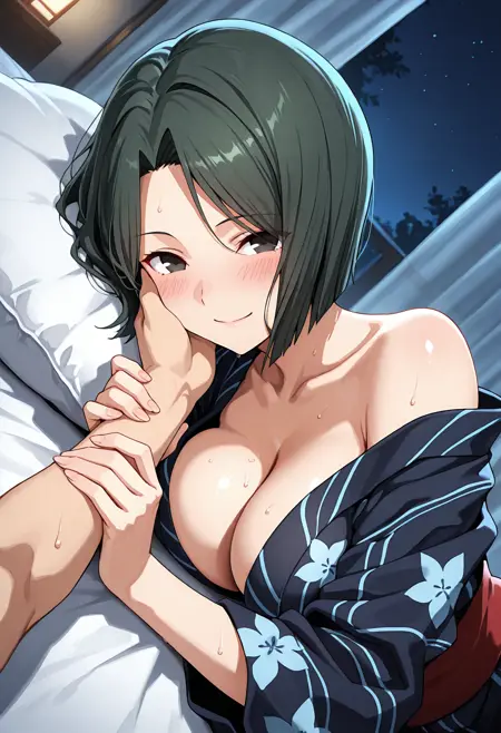 maiya, black hair, black eyes, bob cut, breasts,