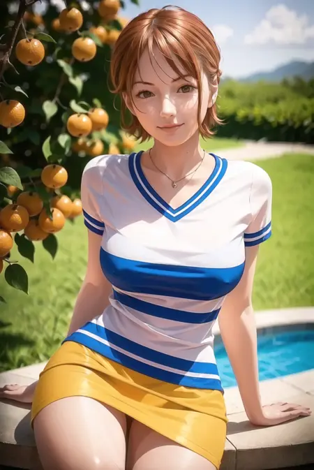 Triggers with nami \(one piece\) for better accuracy. Also use short hair in pre timeskip version. One of the examples is also using my Wano Style LoRA.