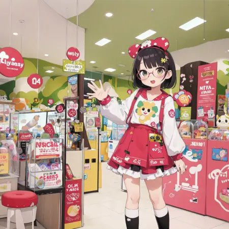 这是一个可以描绘出类似家庭娱乐场所风景的LORA,画面中可能包含全国购物中心等地时有时无的抓娃娃机、投币游戏机等,让全家人都能露出笑容。