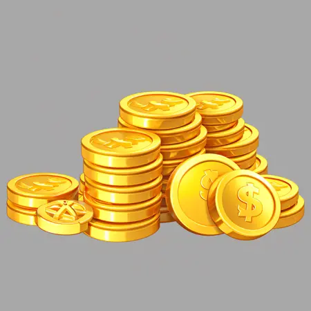 키워드 요소: 금원보, 금덩이, 금화, 동전, 쌓아올린 금덩이, 쌓아올린 금원보, 상자, 다각도의 금화, 참조 테이블