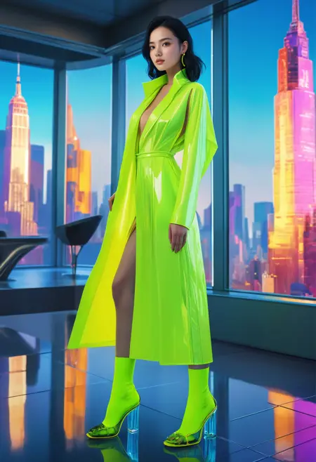 Glasscore Future 是一种干净、高科技的视觉风格,融合了_半透明材质、发光边缘、柔和的霓虹灯光和未来主义极简主义_。它以流线型建筑、反光表面以及通过玻璃、铬和环境雾气重新诠释的赛博朋克风格剪影为特色。适用于塑造那些仿佛存在于精致、高度设计、氛围感未来的角色、环境或物体。
