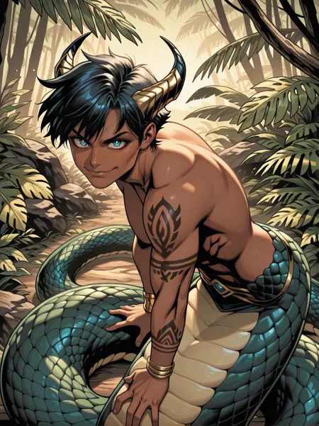 Lamia, monster girl, scales_" 或 "Lamia, monster boy, scales_"