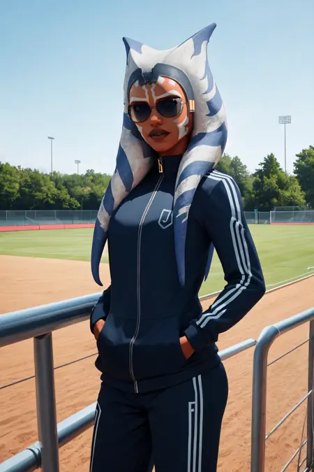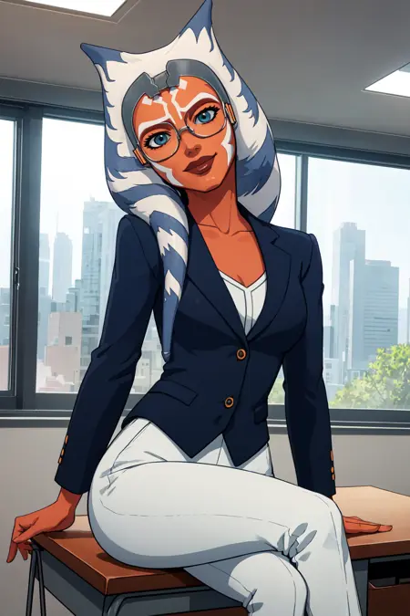 触发词:"AhsokaS7, colored skin" 必须使用,添加 "blue eyes" 以提高稳定性。