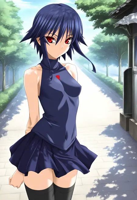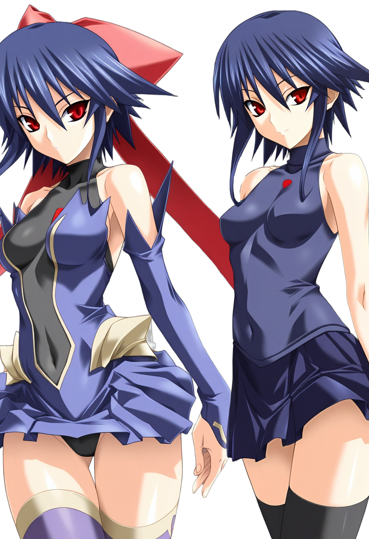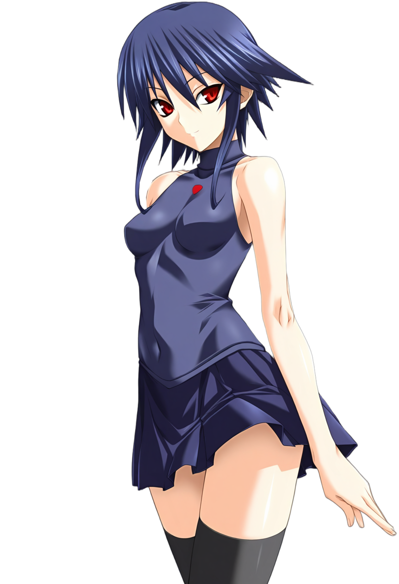 服装: 蓝色无袖高领衫,蓝色裙子,黑色过膝袜,