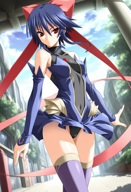 触发词: c-ai,短发,蓝发,红眼,发带,