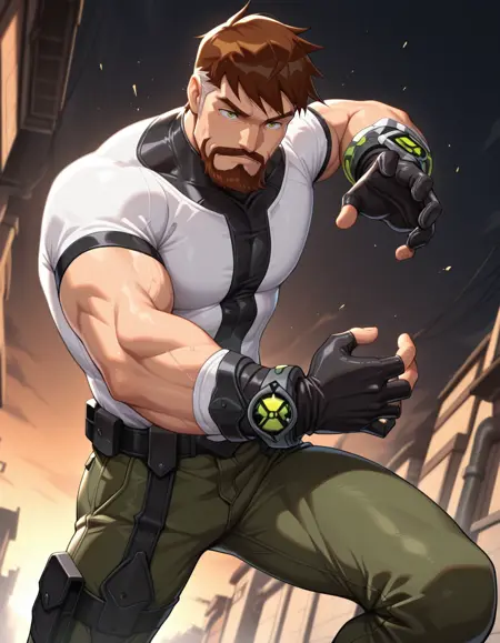 BenT-ARAI-IL, 1boy, male focus, muscular, facial hair, mustache