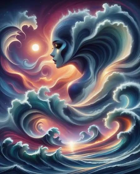 这个LoRa对背景的处理效果很强,因此尽量不要在提示中过多描述背景细节,而应专注于描绘主体。在提示中加入“space”(太空)或“waves”(波浪)可以增强效果。