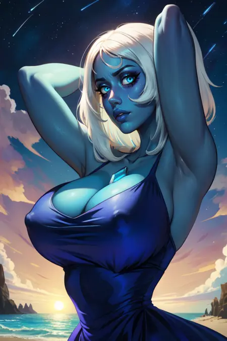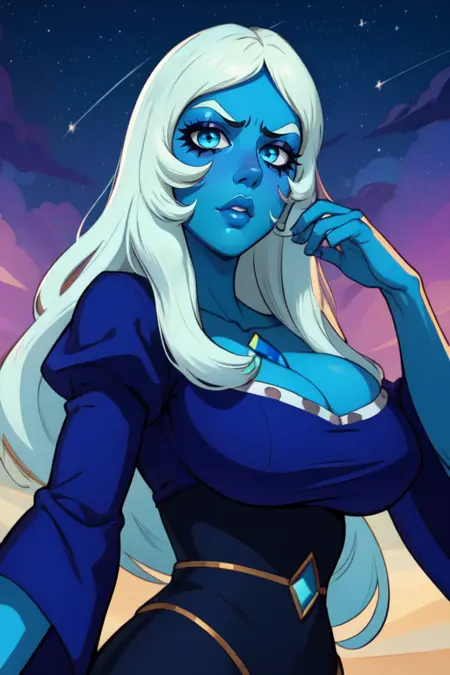 Bledim, 흰 머리, 파란 피부:1.1, 파란 눈, 긴 머리, - 입술 또는 큰 입술,