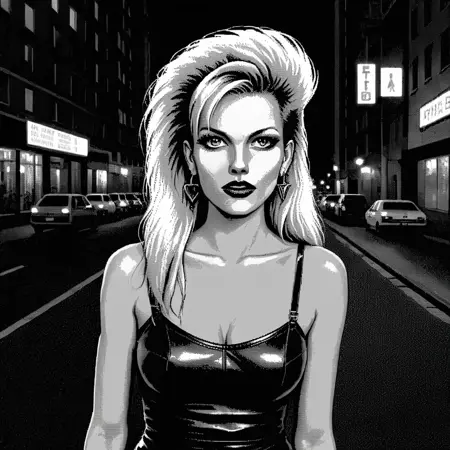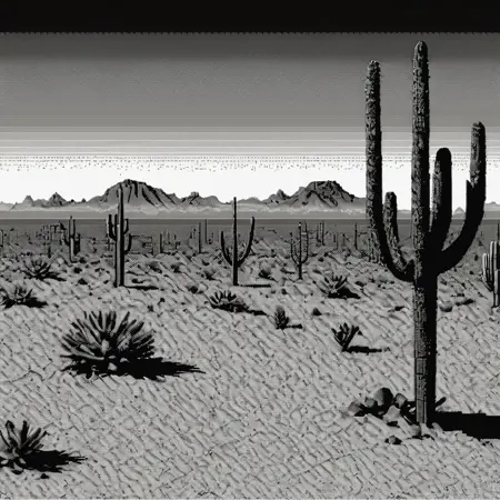 1984年にMacintoshとともにリリースされたMacPaintで作成された画像のスタイルを再現しようとした試みです。これだけで十分な結果が出ますが、プロンプトに「ピクセルアート」や「白黒」などのキーワードを加えることで、より意図した方向に導くことができます。