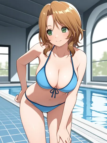 갈색 머리, 짧은 머리, 녹색 눈, 가슴, 큰 가슴,