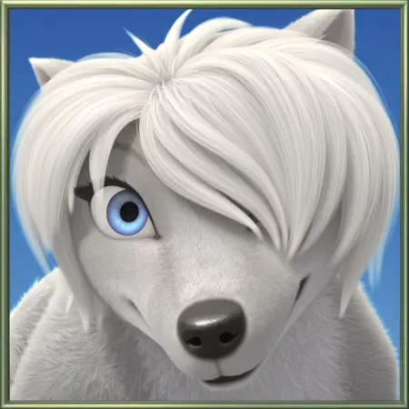 Trigger words: Lily, wolf, feral, blue eyes, white hair, white fur, 1girl, solo