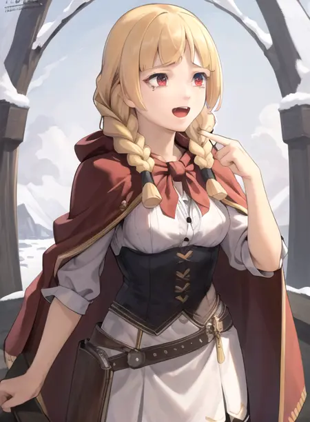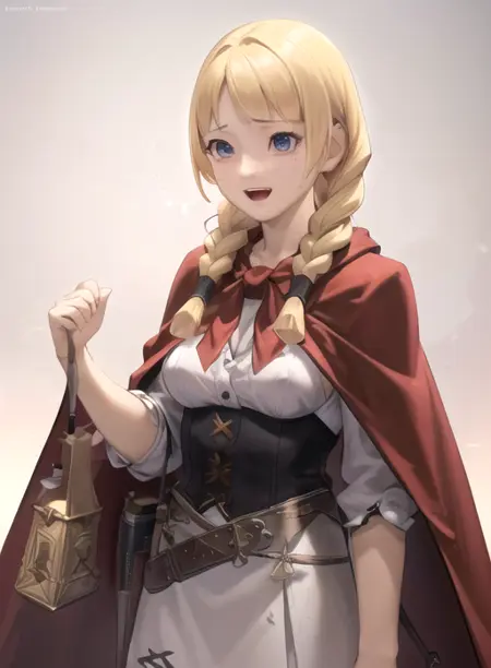0.7-1에서 테스트됨트리거 단어espella cantabella, 땋은 머리, 쌍 땋은 머리, 긴 머리, 금발, 파란 눈, 어깨 위의 머리추가: 망토, 후드, 코르셋, 드레스, 부츠, 벨트, 빨간 후드