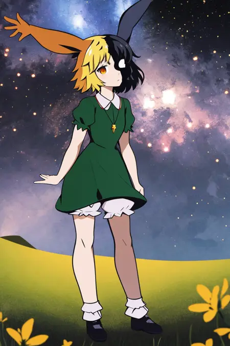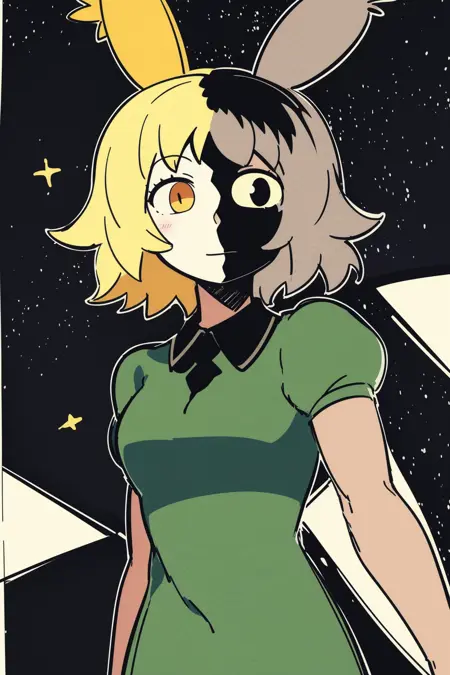 基本プロンプト:1girl、黒髪、金髪、ショートヘア、ツートーンヘア、うさぎの耳