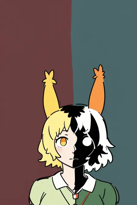 基础提示:1girl,黑发,金发,短发,双色发,兔耳
