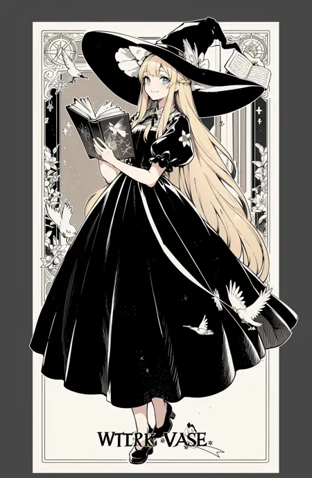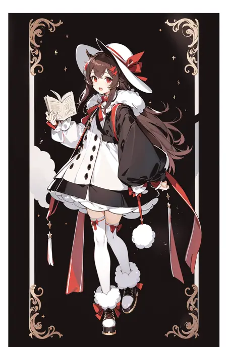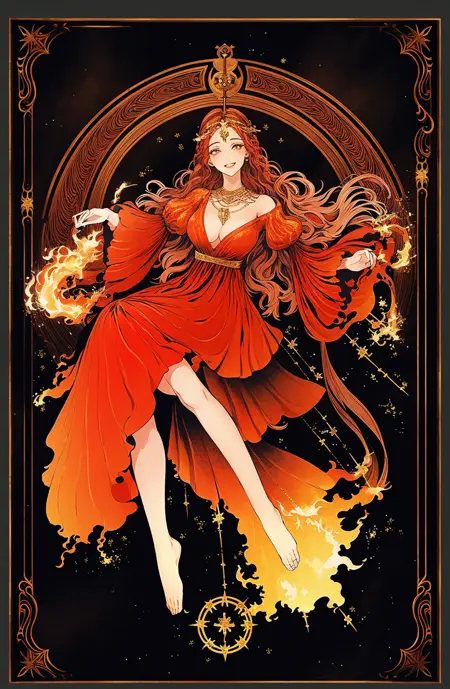 二次元キャラクター:コンセプトアート、タロットカード、金属縁取り、二次元スタイル、1人の少女、独奏、王冠、タロットカード、ドレス、太もも、白い靴、全身