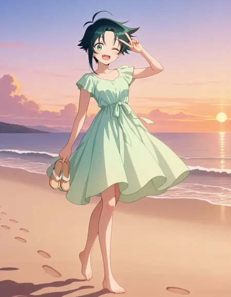 <lora:minami_shiunji-shiunji_ke_no_kodomotachi_s1-ixl-anime-soralz:1>, minami shiunji (shiunji-ke no kodomotachi), short hair, green hair, antenna hair, green eyes