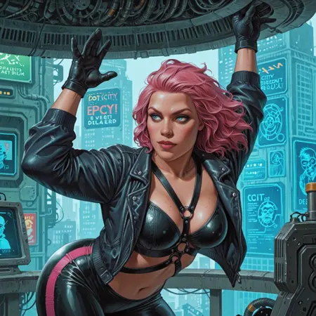 Attempt to merge an illustrative model with pulp fiction and comic aesthetic vibes.