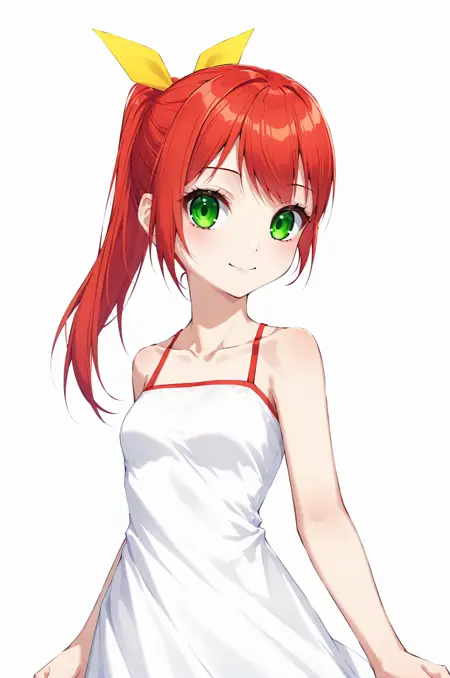 프롬프트 - hanaPangya, 녹색 눈, 빨간 머리, 머리 리본, 꼬리머리