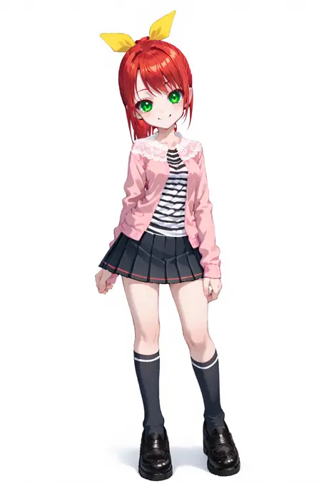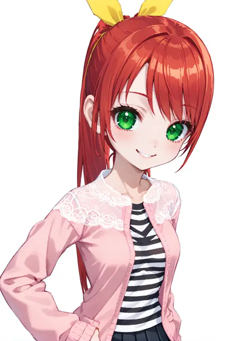 프롬프트 - hanaPangya, 녹색 눈, 빨간 머리, 머리 리본, 꼬리머리