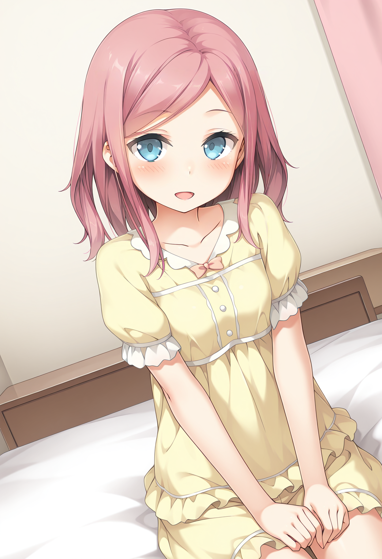 • 黄色睡衣,蓬松袖子,黄色连衣裙,