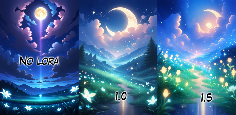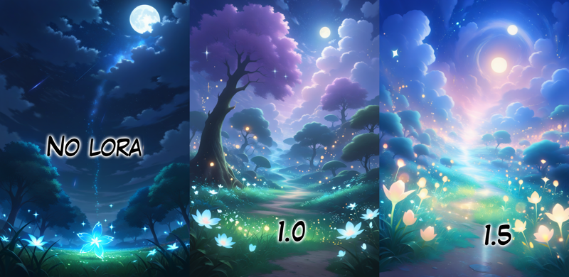 이 LoRA는 주로 배경에 영향을 주어 더 마법적이고 꿈같은 느낌을 줍니다 ^^