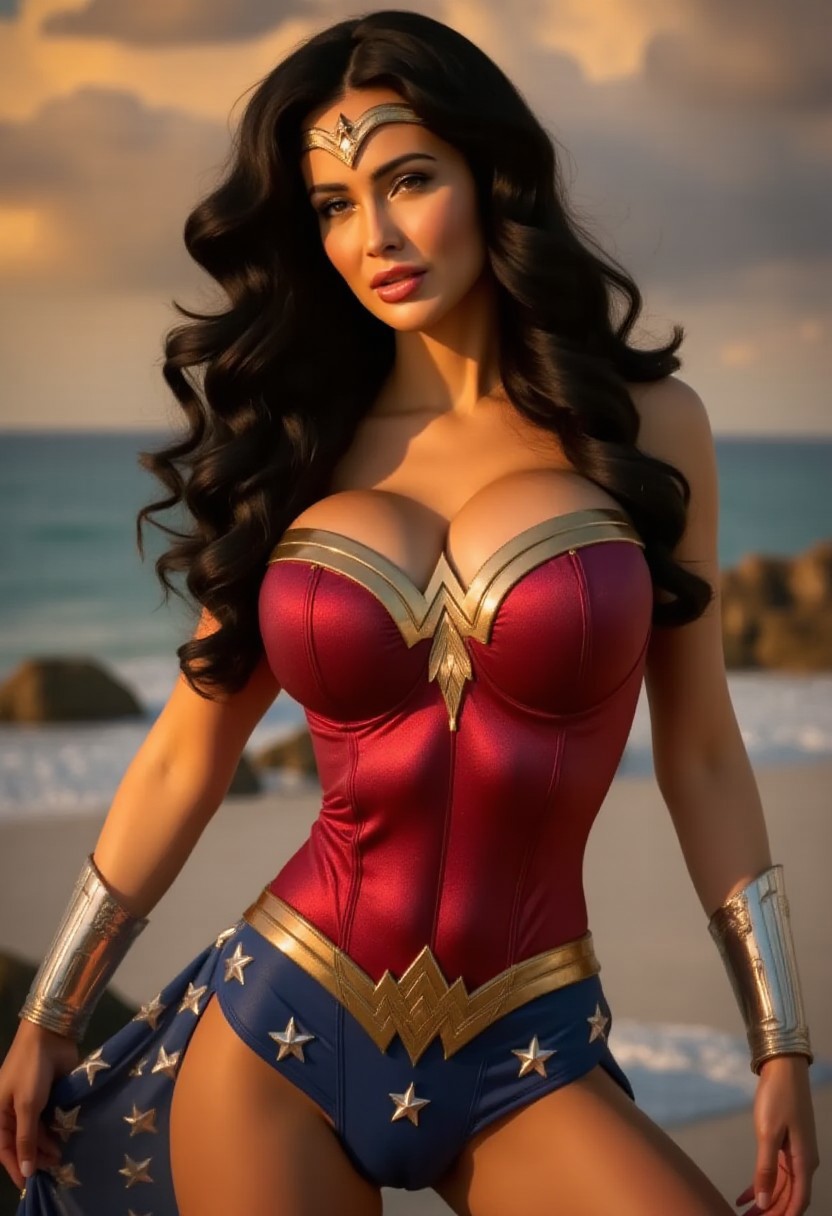 예시: "매우 큰 강조된 가슴과 젖가슴을 가진 여성을 촬영한 사진"