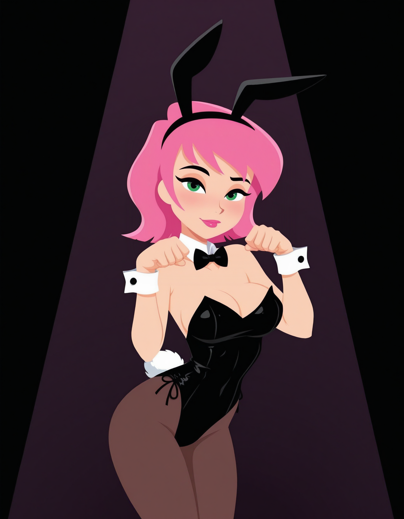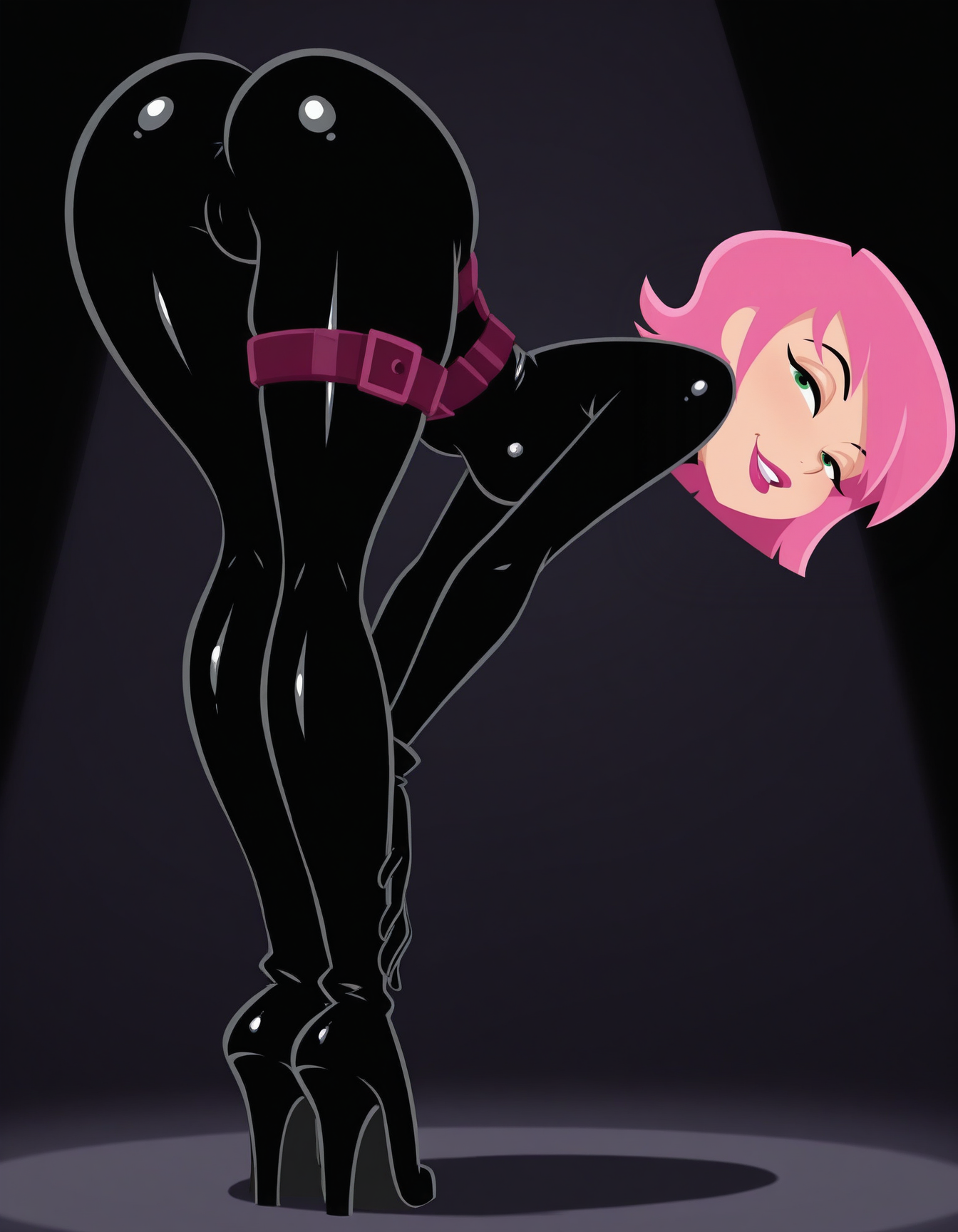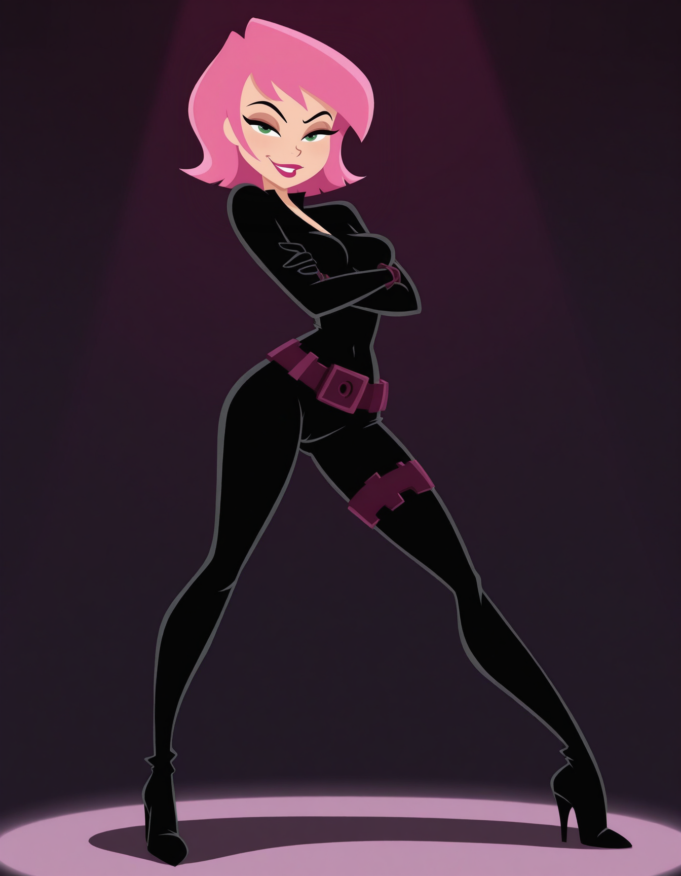服装:黑色紧身衣、腰带、大腿绑带、手套、黑色鞋履、高跟鞋