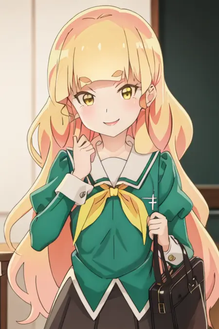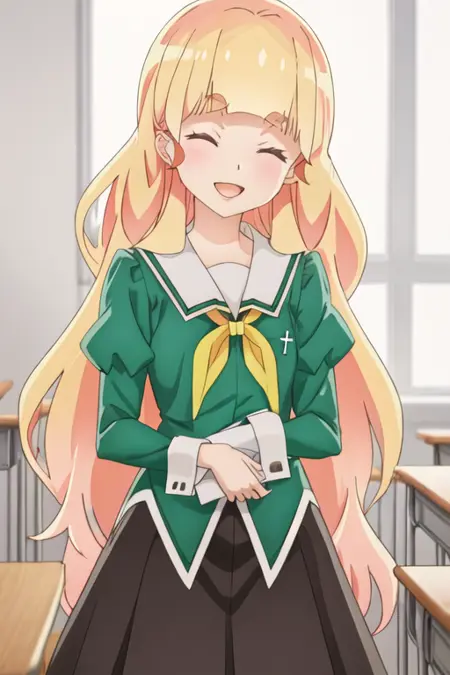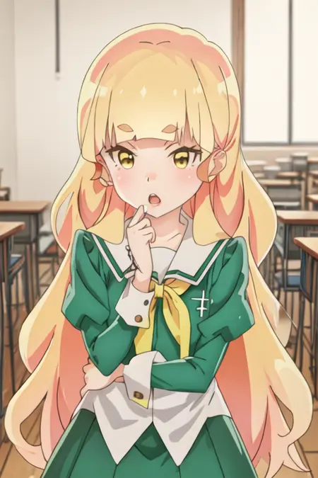 トリガーワードはshiraki_hime_watashinoyuriwaoshigotodesu、推奨タグはbest quality, masterpiece, highres, solo, {shiraki_hime_watashinoyuriwaoshigotodesu:1.15}, blonde_hair, long_hair, bangs, thick_eyebrows, yellow_eyes, blunt_bangs, blush, open_mouthです。