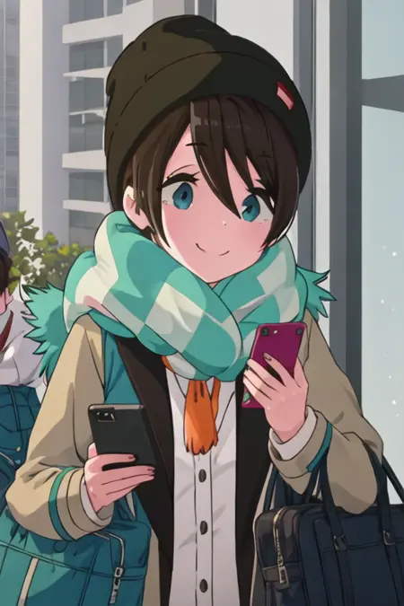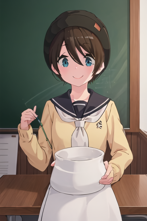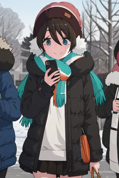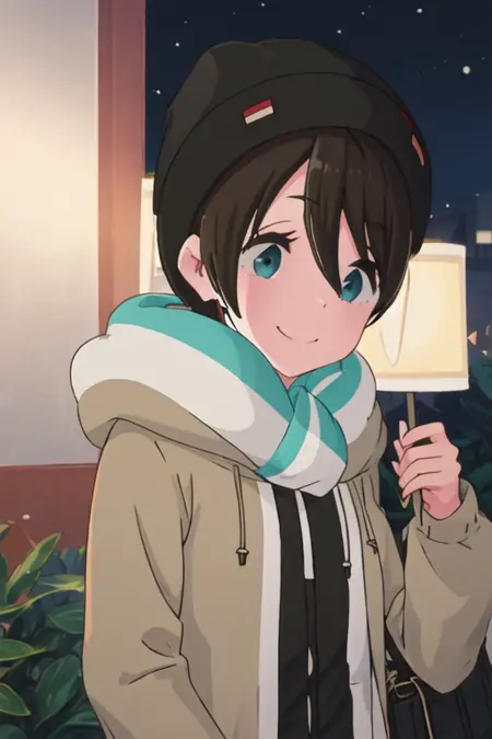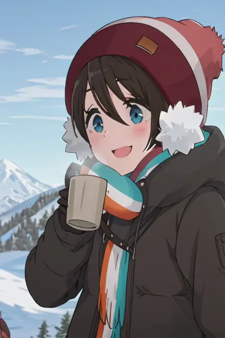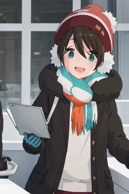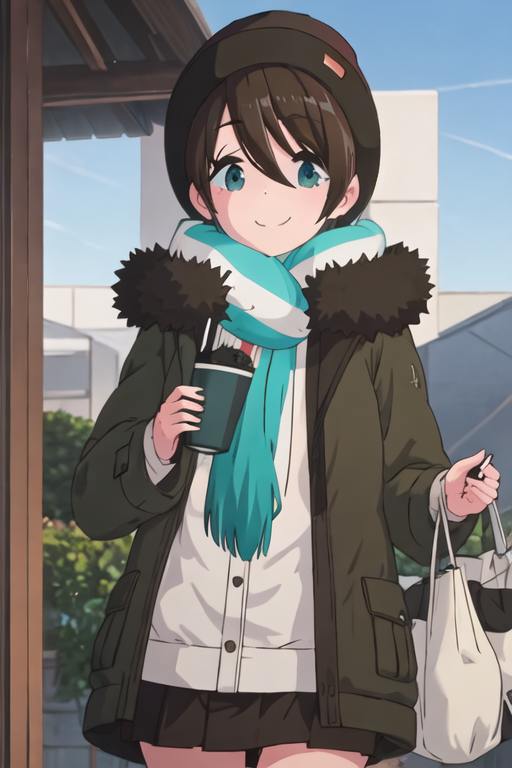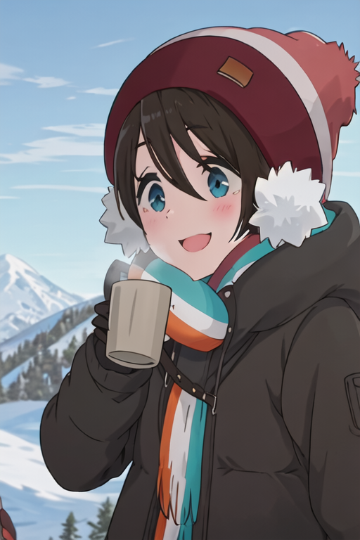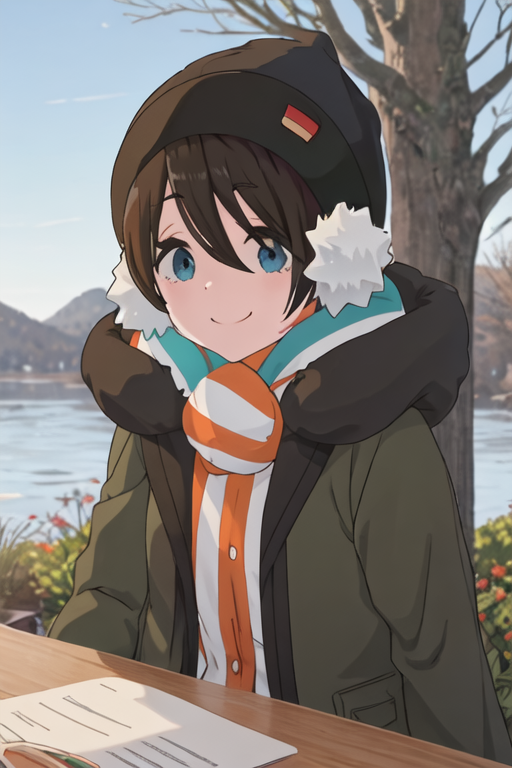 トリガー語は saito_ena_yurucamp で、推奨タグは best quality, masterpiece, highres, solo, {saito_ena_yurucamp:1.15}, blue_eyes, short_hair, smile, brown_hair, black_hair, hat, closed_mouth です。