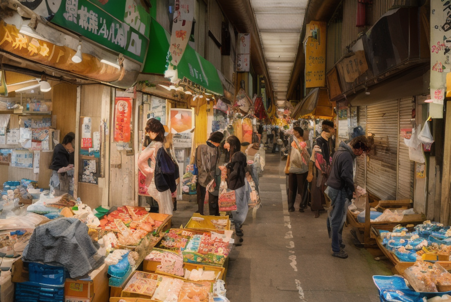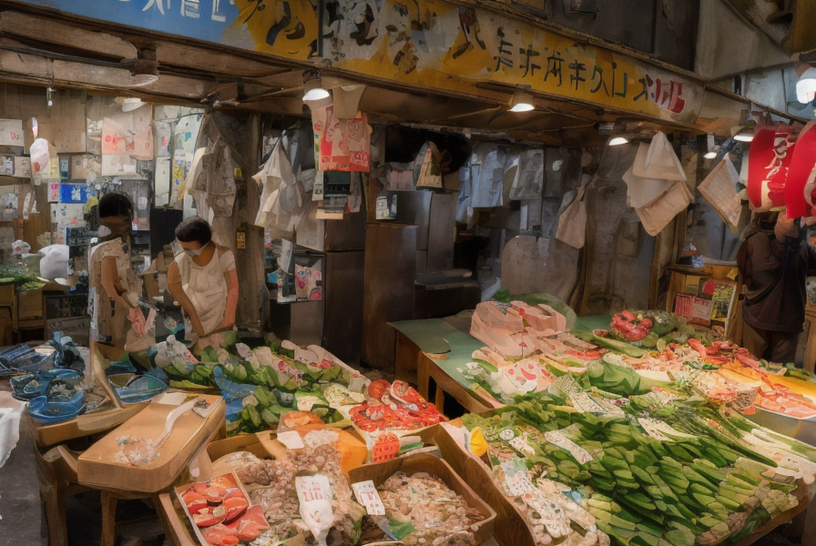 북큐슈시에 있는 단가 시장과 같은 풍경을 출력합니다. 메인 거리뿐 아니라 육류점, 어시장, 채소가게 등의 풍경을 출력할 수 있습니다.