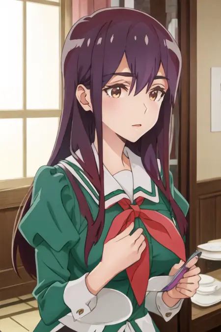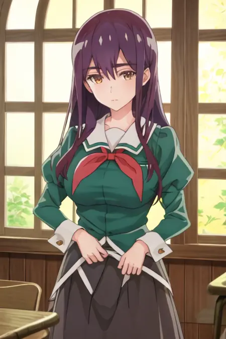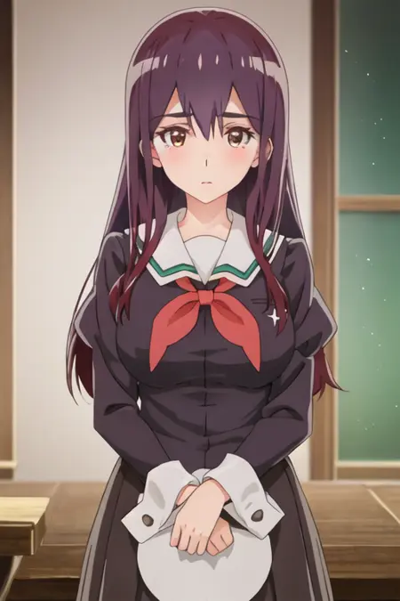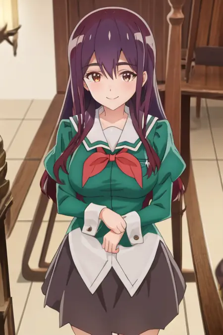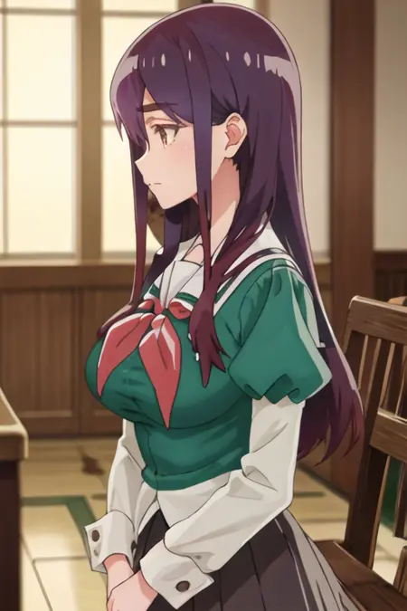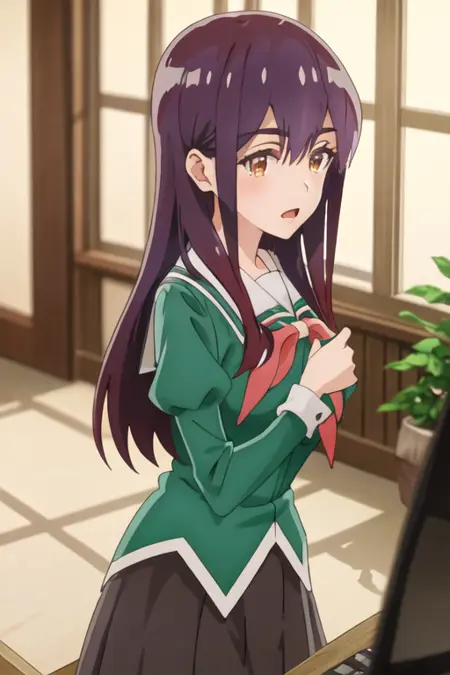 トリガー語は yano_mitsuki_watashinoyuriwaoshigotodesu で、推奨タグは best quality, masterpiece, highres, solo, {yano_mitsuki_watashinoyuriwaoshigotodesu:1.15}, long_hair, purple_hair, brown_eyes, hair_between_eyes です。