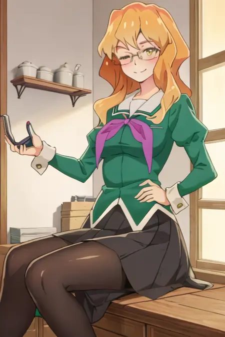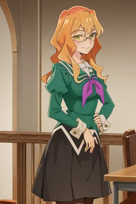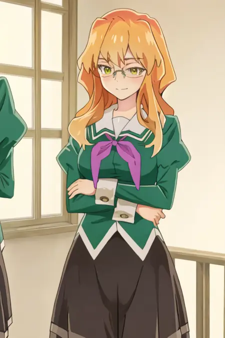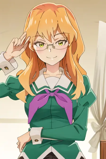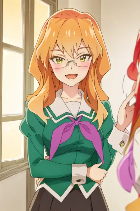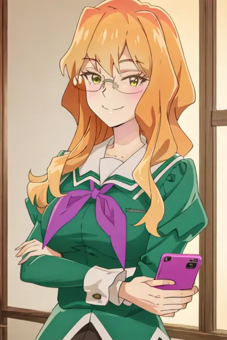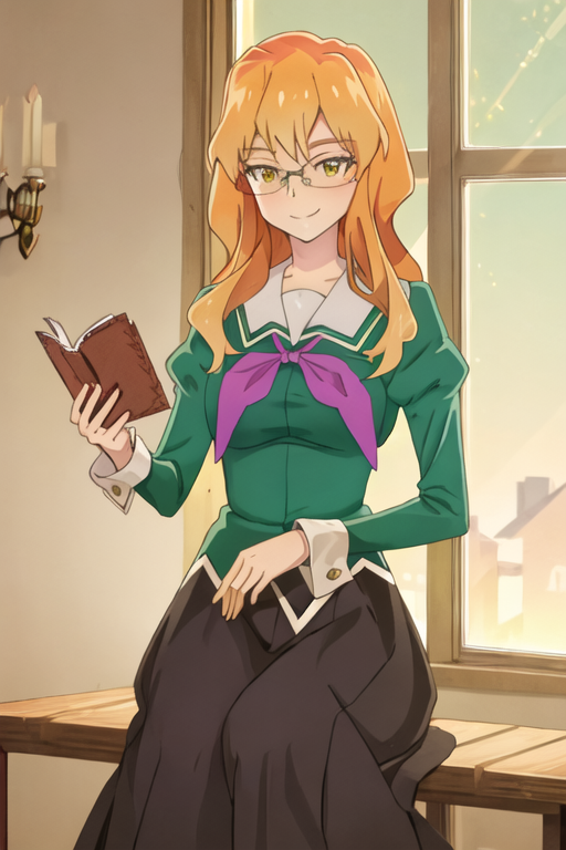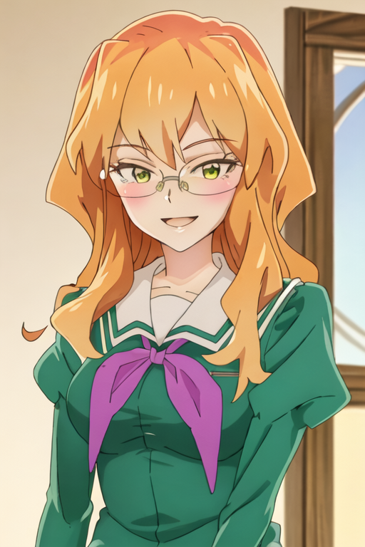 触发词为 chibana_sumika_watashinoyuriwaoshigotodesu,推荐标签为:best quality, masterpiece, highres, solo, {chibana_sumika_watashinoyuriwaoshigotodesu:1.15}, long_hair, blonde_hair, glasses, green_eyes, smile。