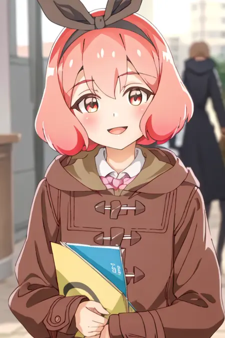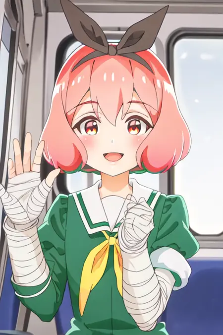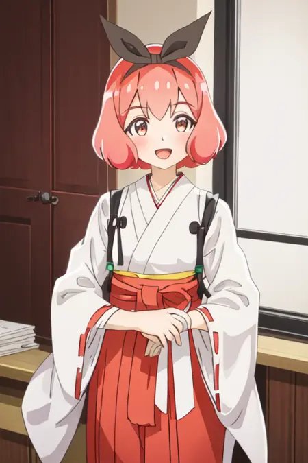 トリガーワードはkoshiba_mai_watashinoyuriwaoshigotodesuで、推奨タグはbest quality, masterpiece, highres, solo, {koshiba_mai_watashinoyuriwaoshigotodesu:1.15}, pink_hair, short_hair, hairband, ribbon, hair_ribbon, smile, bangs, black_ribbon, blush, open_mouth, brown_eyesです。