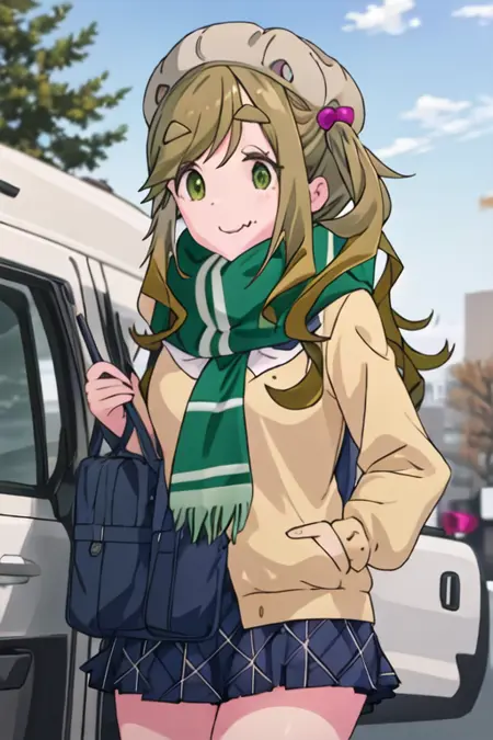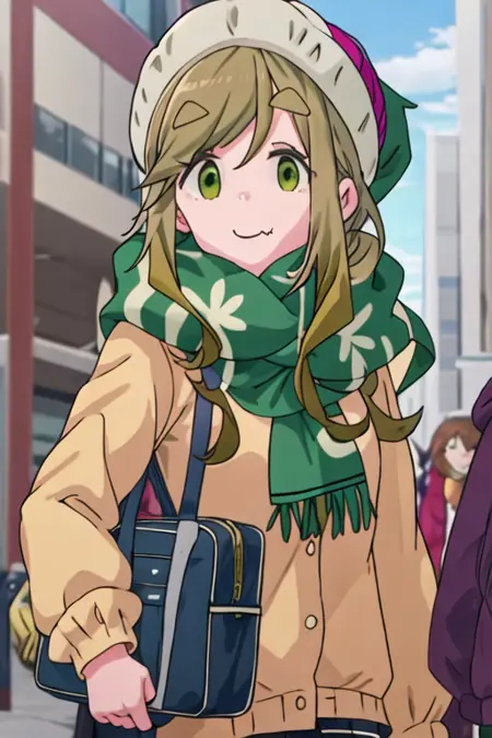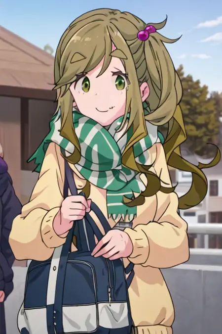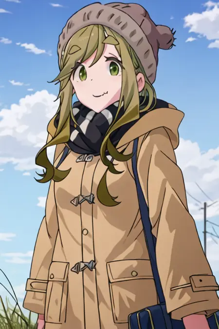 触发词为 inuyama_aoi_yurucamp,推荐标签为:best quality, masterpiece, highres, solo, {inuyama_aoi_yurucamp:1.15}, thick_eyebrows, long_hair, fang, skin_fang, brown_hair, green_eyes, smile, closed_mouth, side_ponytail, hair_ornament, hair_bobbles。