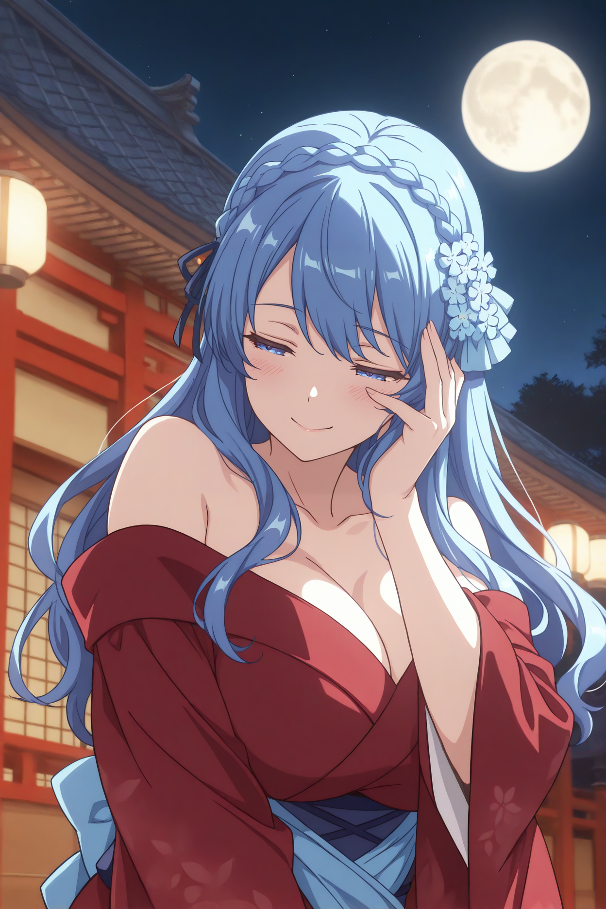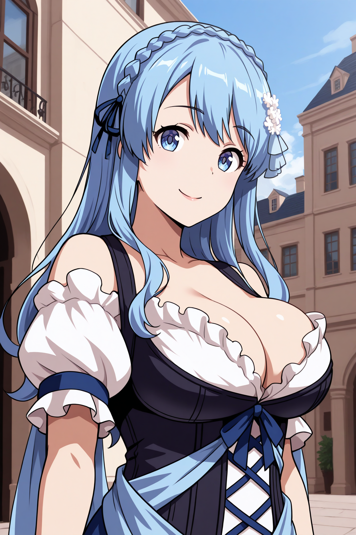 Trigger word is "junadoma" and "blue hair, long hair, crown braid, blue eyes" is required.