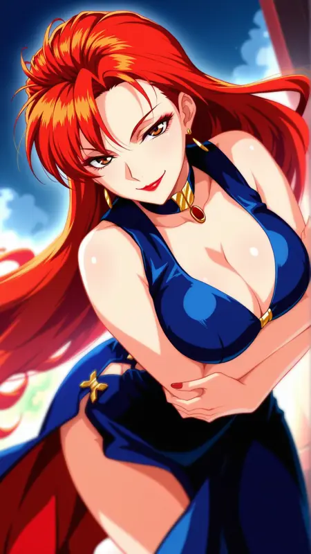 外見: 茶色の目、赤髪、長い髪、成熟した女性、大きな胸、