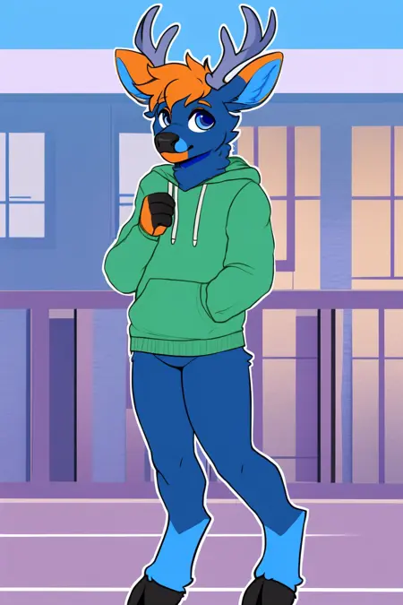 Other prompts : 1boy, blue eyes, antlers, furry, deer, snout