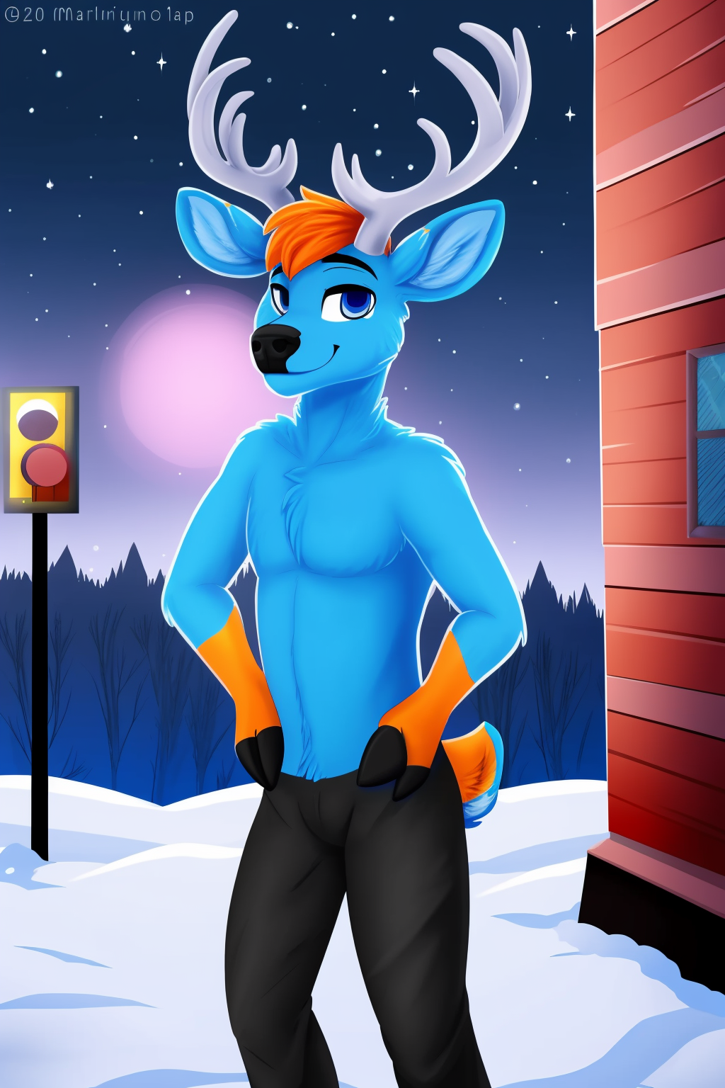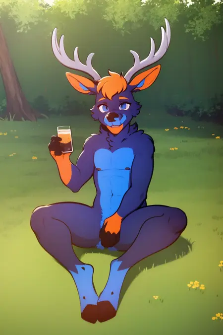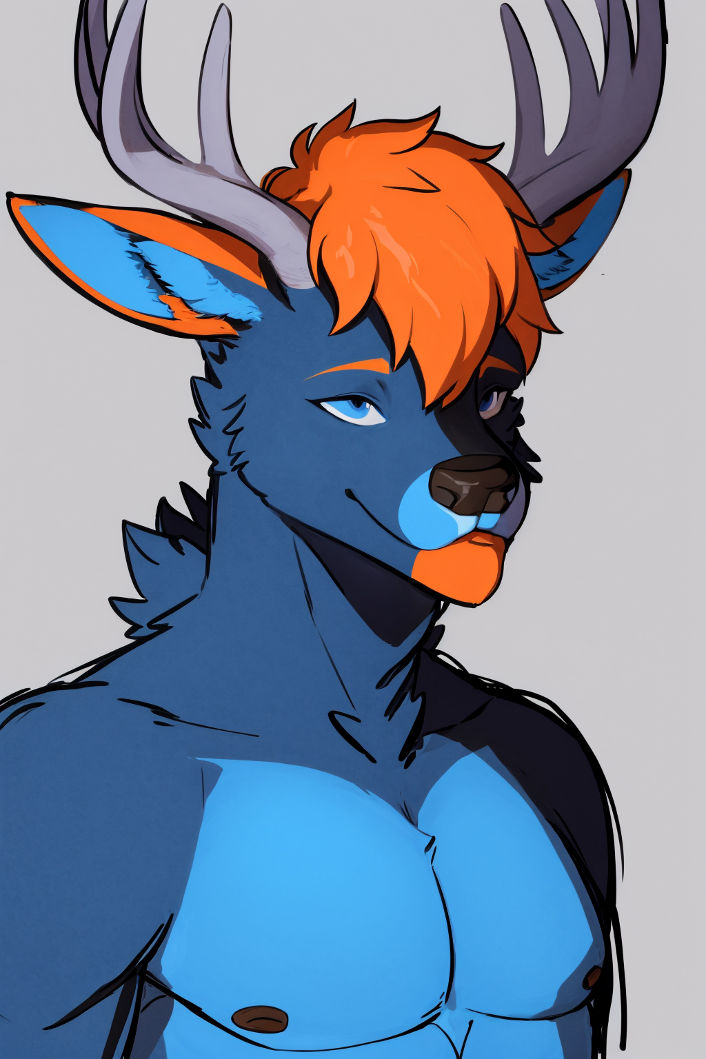 Other prompts : 1boy, blue eyes, antlers, furry, deer, snout