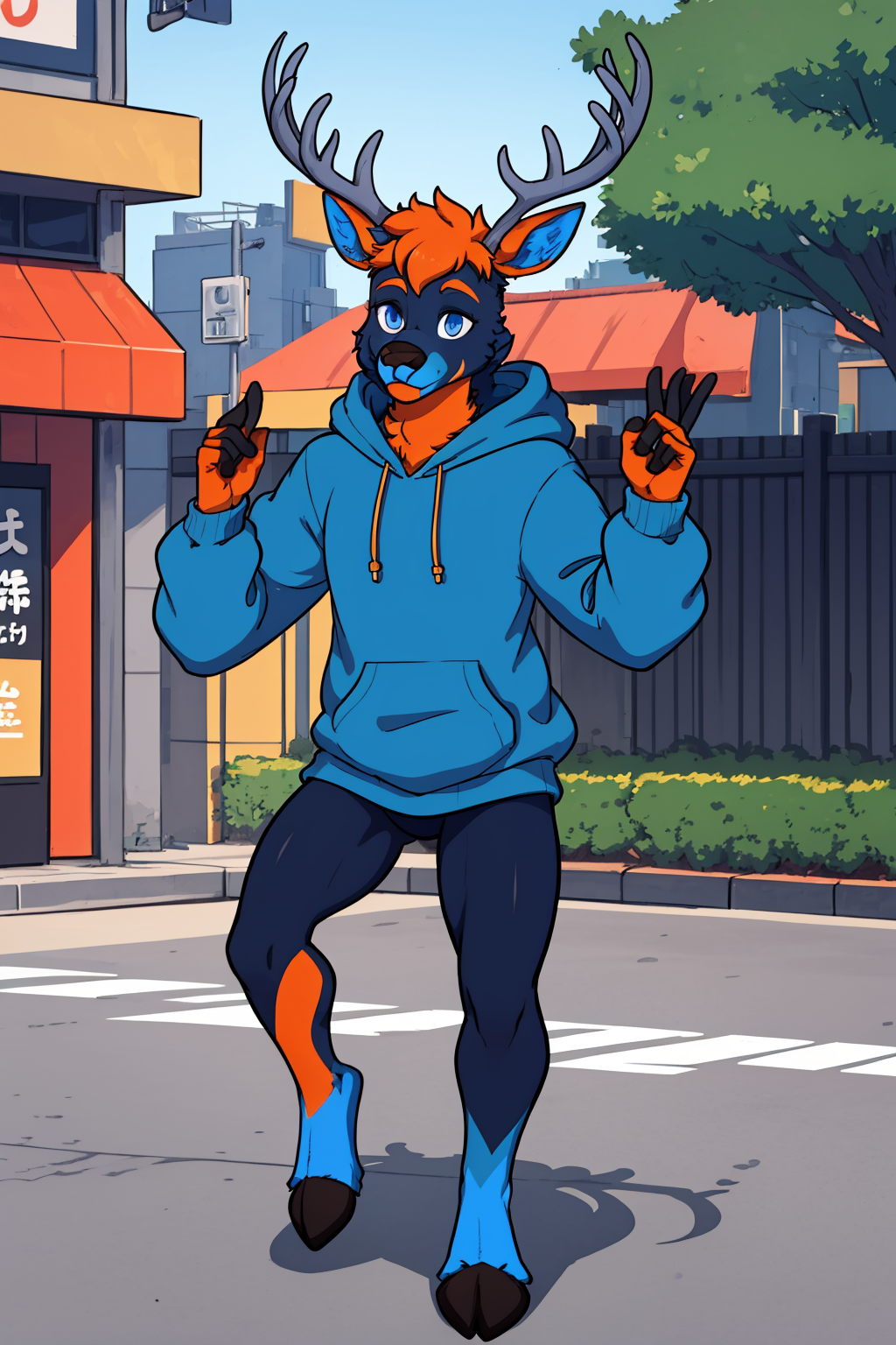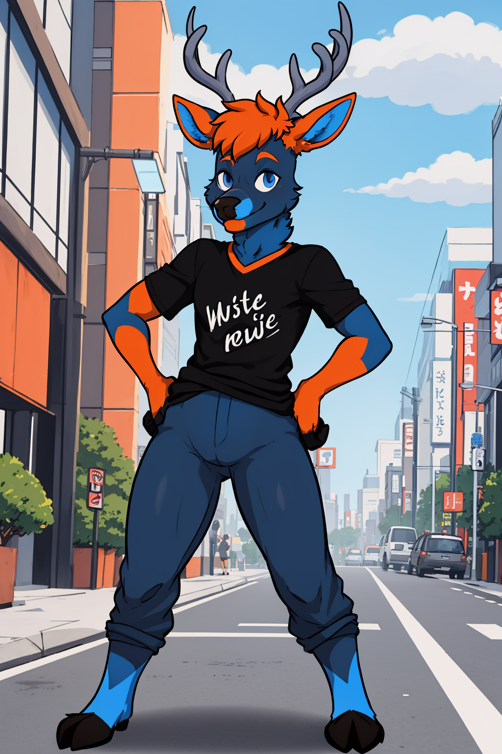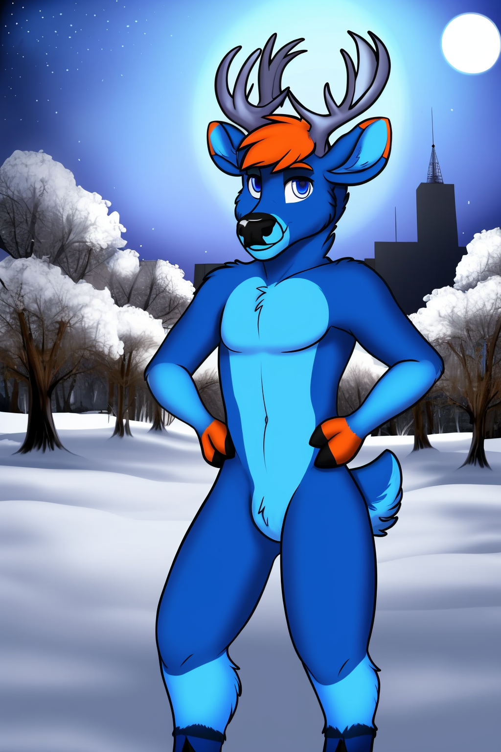 Other prompts : 1boy, blue eyes, antlers, furry, deer, snout