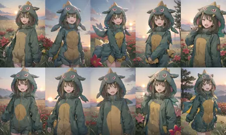 Single images in the preview are cherry-picked from random prompts. Image grids are unfiltered (seed=0-9).