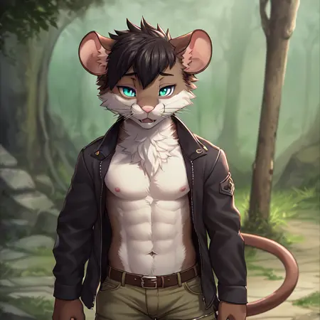 uploaded on e621, anthro, nsfw, explicit, explict, (rat, skaven:1), high res, (detailed realistic image:1), (detailed eyes, beautiful expressive eyes:1), impasto impressionism, insane details, soft, (hyper realistic fur:1), (detailed fur:1), pupils, (fur covered body), (male:1), (slightly chubby:1), (rat features, skaven features:1), (expressive face, detailed face:1), (realistic:1), (photorealistic, photo-realistic:1), nipples, belly button, full color, (3d:1), (highly detailed:1.2), masterpiece, 8k uhd, (suspicious expression:1), (back alley background), (full-length portrait), pants, open jacket, peeking around corner, (athletic:0.8), (two tone hair, anime hair:1), wielding pistol, dark fantasy art