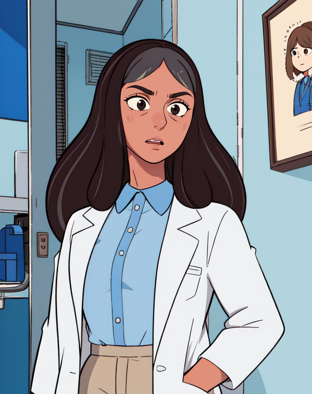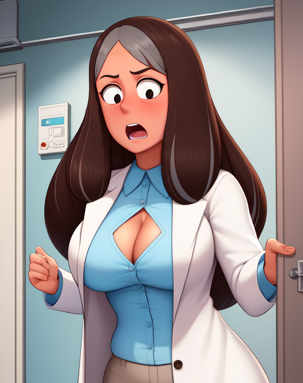 priyanka, 茶色の髪、グレーのストライプ入り髪、黒い目、長い髪、-- 半開きの目、アニメ風