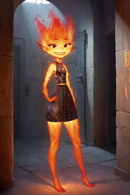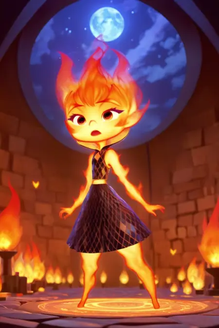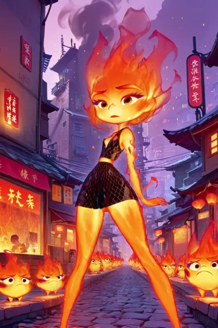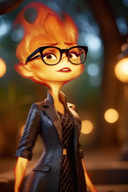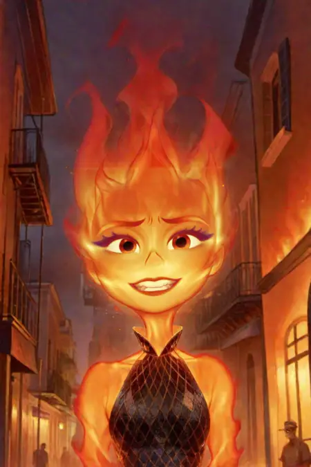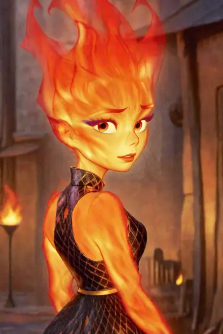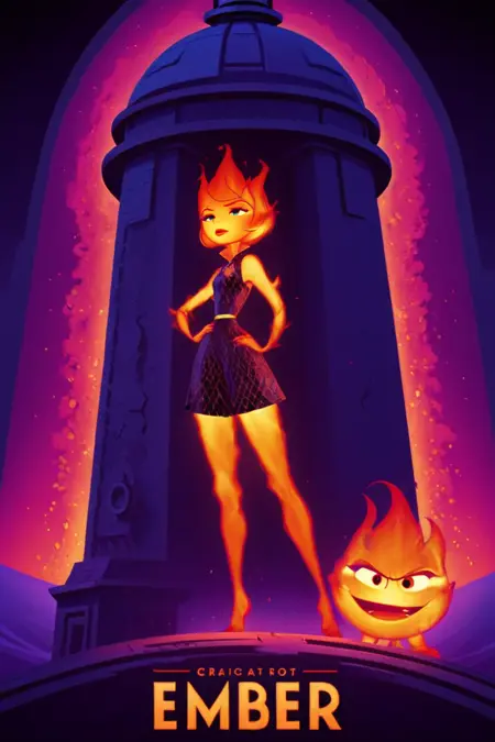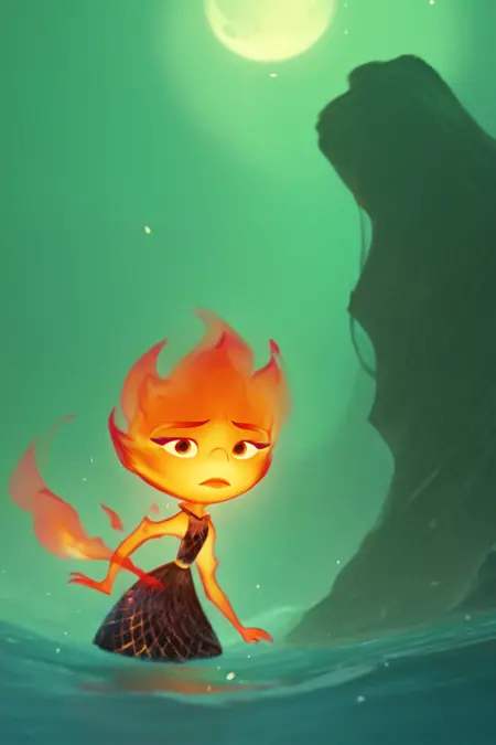Trained using the onsite lora Trainer of civitai using cinematic stills of the new Pixar Movie Elemental.