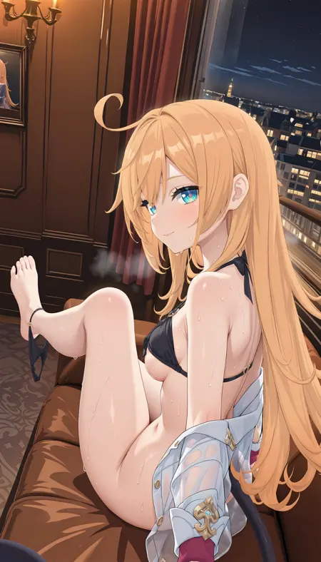 머리: 1소녀, 혼자, tj_escoffier, 중간 크기의 가슴, escoffier 요리사 모자, 흰색 머리 장식, 요리사 모자, 머리 장신구, ahoge, 주황색 머리, 긴 머리, 파란 눈, escoffier def 눈