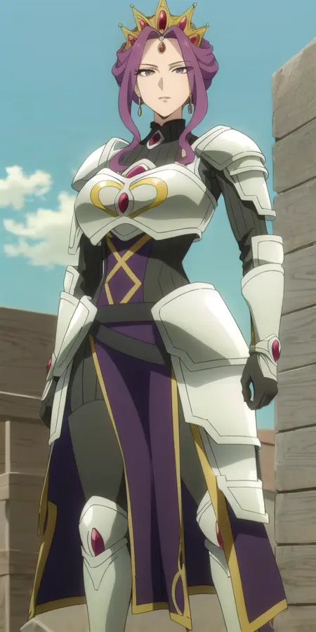 Purple_royal_dress_Black_skirt_High_collar_Choker_Crown: 그녀의 기본 복장