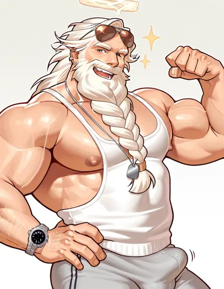classic: white beard, halo,white robe, white hair, glasses, white gloves, wings